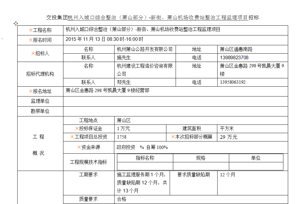 公交候車亭提升工程監(jiān)理招標(biāo)招標(biāo)公告 2015-11-04