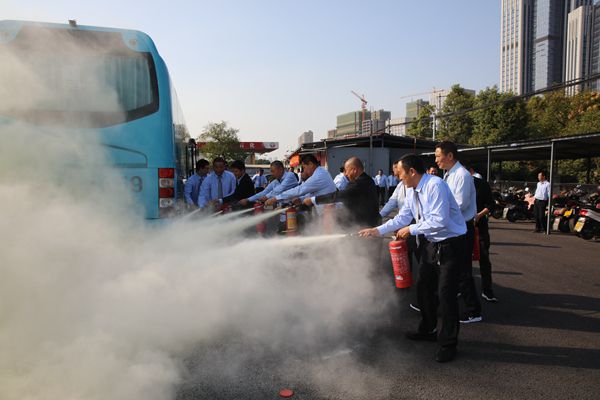 演練開始前,客運分公司副經理黃曉健對全體參演人員進行了消防安全培訓,培訓的主要內容為滅火器的使用方法、安全錘的正確使用方式、車輛起火等突發消防事故的處理流程。演練過程模擬車輛在行進過程中,車輛后方突發冒煙起火狀況,駕駛員按步驟進行應急處置。參與演練的駕駛員紛紛表示,通過實際操作和學習,不僅掌握了滅火器的使用方法,還增強了消防安全意識,提升了撲滅初期火災的能力。