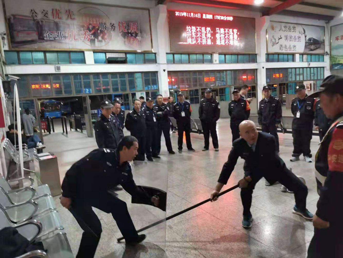 臨近年末,綜治維穩(wěn)形勢愈發(fā)嚴峻,為進一步推動平安蕭山建設(shè),提高公司反恐怖防范和應(yīng)急處置能力,鞏固司乘人員的反恐防恐安全意識,12月27日晚間,蕭山公交公司在通惠路公交站積極開展反恐防恐應(yīng)急知識培訓(xùn)及演練活動。活動中,所有參培人員首先接受了反恐防恐知識、公交車突發(fā)事件處置和消防知識培訓(xùn)。隨后,參配人員在公司安全管理人員安排下模擬開展突發(fā)恐怖劫持事件的反恐防恐應(yīng)急處置演練。