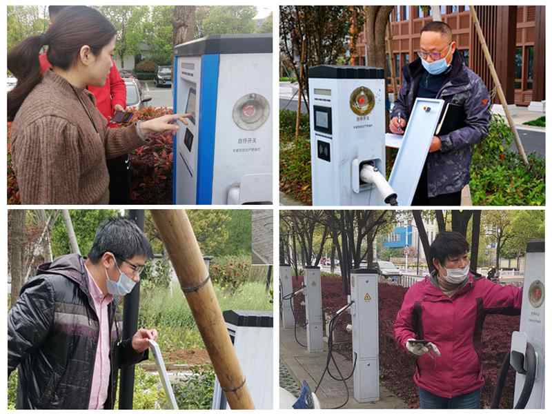 檢查組分別前往瓜瀝、進化、體育路等充電場站開展安全檢查。在檢查過程中,檢查組對充電樁箱內是否受潮、防護圍欄安裝是否符合規(guī)范、電路線纜管道是否完好等重點部位進行了仔細檢查,并對各個場站的充電樁進行了測試,是否能正常充電。