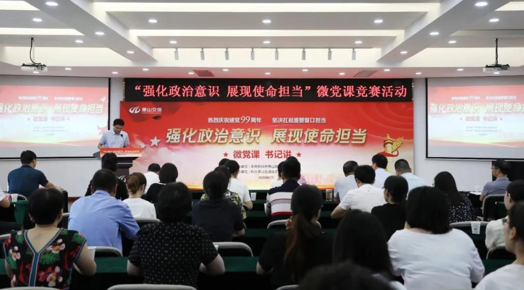 為慶祝建黨99周年,落實我區(qū)強基固本年活動精神,響應全域黨建大比武部署,進一步營造黨建領域比學趕超氛圍,緊緊抓牢支部書記這一黨組織的“牛鼻子”與“關鍵少數(shù)”,增強守初心、擔使命的思想和行動自覺,7月16日,由區(qū)委組織部主辦,蕭山交投集團承辦的區(qū)屬國企組“微黨課·書記講”競賽活動舉行。