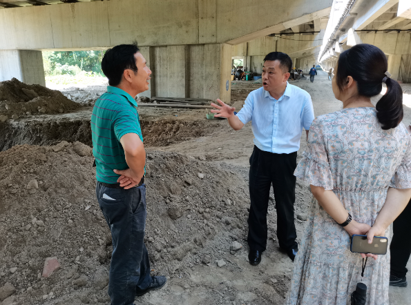 8月13日上午,機場高速公司總經理李忠曉到杭甬互通橋下檢查塌方排水溝修建進展,綜合辦公室主任朱紅芳及安全養護部副經理蔣建洪陪同。
