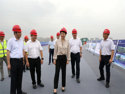 佟桂莉一行先后來到時代大道改建、浦陽江治理三期工程現場,仔細查看項目建設進度,認真聽取情況匯報,并充分肯定了前階段工作成效。