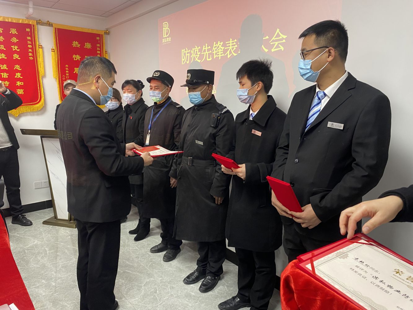 為激發(fā)公司全體員工迎難而上、共克時(shí)艱的昂揚(yáng)斗志,大力弘揚(yáng)敬業(yè)奉獻(xiàn)精神,杭州蕭山濱弘物業(yè)管理有限公司于2022年2月25日下午13:00在興議家園服務(wù)中心二樓會(huì)議室組織召開防疫先鋒表彰大會(huì),對(duì)在疫情防控工作中做出突出貢獻(xiàn)的先進(jìn)個(gè)人予以表彰。