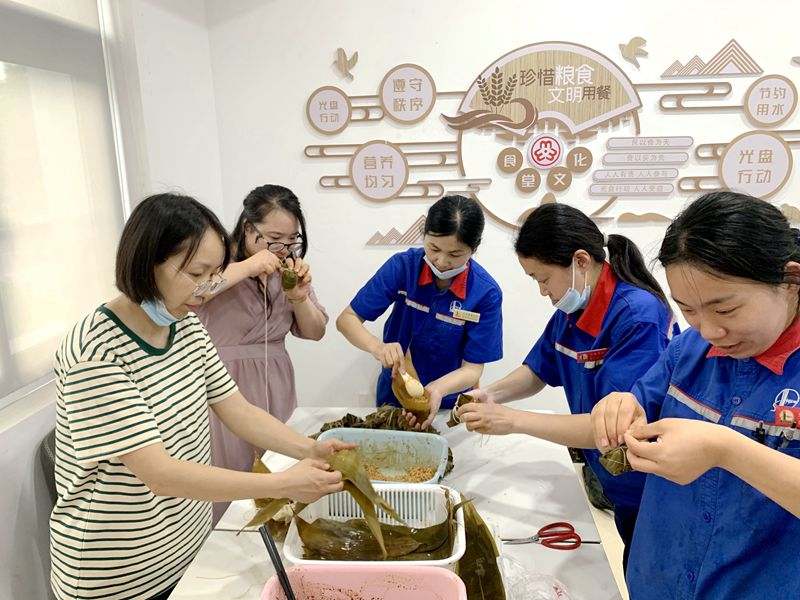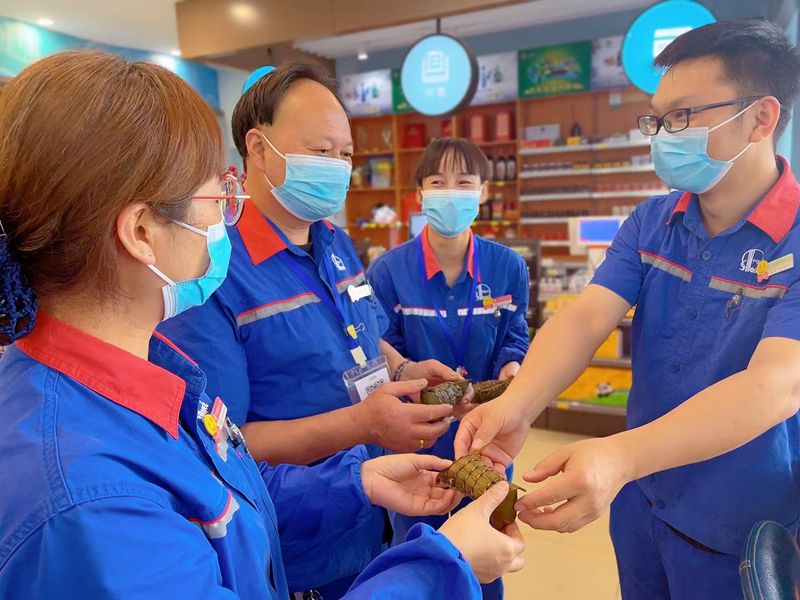 各加油站紛紛組織員工動手制作端午粽子,大家集思廣益,分工有序,提前將糯米、粽葉、鮮肉、蜜棗等材料準備好,“師傅”帶“徒弟”,現學現包,做得有模有樣。比起吃粽子,這制作、烹飪的過程反而讓大家感到更快樂。吃上自己和同事包的粽子,味道別提有多美。