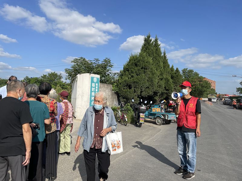 現(xiàn)場,老人們在志愿者的有效引導(dǎo)下排起長長的隊伍,隊伍排到哪里,我們的志愿服務(wù)就跟到哪里。黨員志愿者們牢記為群眾辦實事的初心,與社區(qū)居民志愿者密切配合,細心觀察老人的身體狀況,及時為老人們答疑解惑,認真普及疫苗接種的相關(guān)政策、知識,傳遞黨和政府為民、惠民的關(guān)懷和真情。