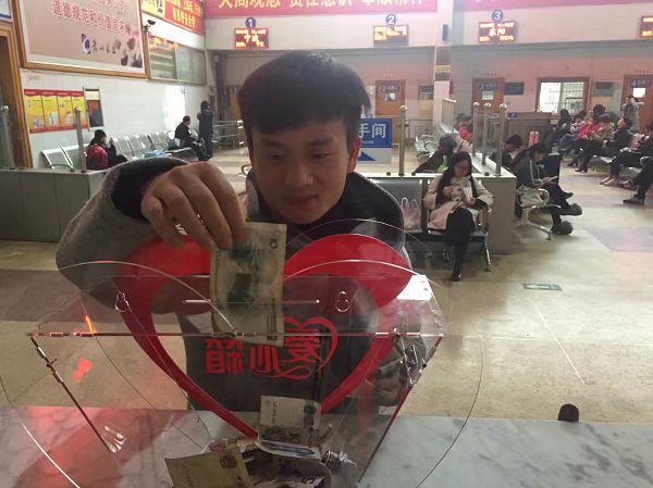 為什么會萌生“愛心箱”的想法?總站的工作人員解釋說,這些年來,站里時(shí)常會遇到旅客因?yàn)椴钍畮锥畨K錢而買不起票的情況,尤其是春運(yùn)期間人流量大,這種情況就更多。很多時(shí)候,工作人員都想著一年回家一趟不容易,干脆自掏腰包為旅客補(bǔ)足車票錢。有了這只“愛心箱”,就能更好地借助社會大眾的力量,幫助那些有需要的旅客。自愛心箱入駐汽車總站服務(wù)臺以來,陸陸續(xù)續(xù)有不少工作人員和熱心的旅客前來捐款,其中最“壕”的一位一下子就捐了50元。