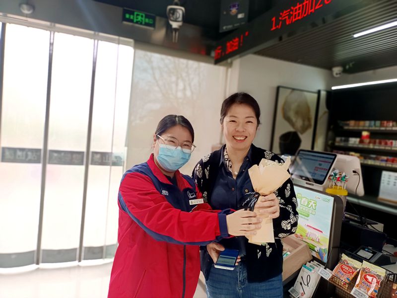 一大早節日的氣息便撲面而來,作為活動主陣地的各加油站,準備了一束束漂亮的香檳玫瑰,喜迎往來顧客,為今日來站消費的女顧客們送上美麗的鮮花和節日的美好祝福。“早上就有驚喜!美好的心情一下子就有了!”收到鮮花的女顧客們開心地向加油員們道謝,并祝女同胞們節日快樂。公司婦聯也在今天上班的第一時間為兩位女領導及行政女員工們送上了漂亮的鮮花和節日的問候。