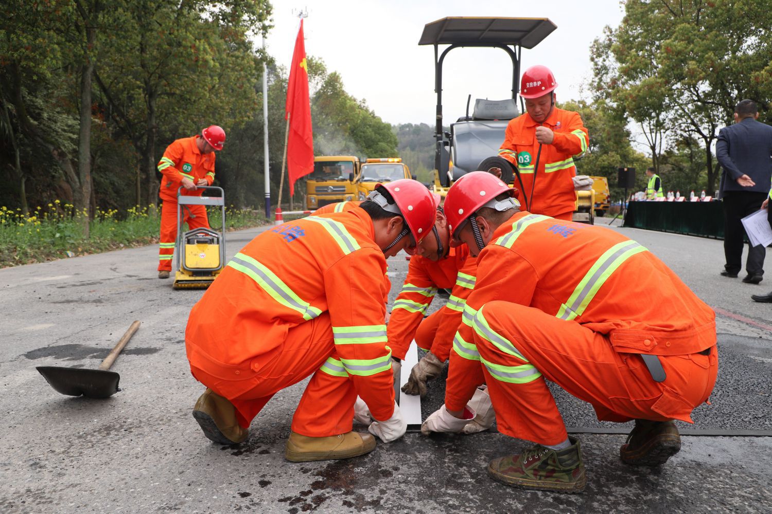為響應(yīng)“紅色領(lǐng)杭·奉獻亞運”大考大賽號召,進一步發(fā)揮基層黨組織和共產(chǎn)黨員戰(zhàn)斗堡壘作用與先鋒模范作用,也為進一步激發(fā)基層養(yǎng)護工人“學(xué)技術(shù)、鉆業(yè)務(wù)、提技能”的積極性,努力鍛造一支業(yè)務(wù)精、能力強、作風(fēng)好的公路養(yǎng)護隊伍,實現(xiàn)“席地而坐”、“杯水不溢”的通行環(huán)境,結(jié)合公司2023年“2430”黨建品牌創(chuàng)建行動計劃安排,3月28日下午,杭州蕭山交投公路養(yǎng)護服務(wù)有限公司在G235與S307一段封閉道路內(nèi)組織開展了第一屆坑槽修復(fù)技能競賽。公司班子領(lǐng)導(dǎo)參加。