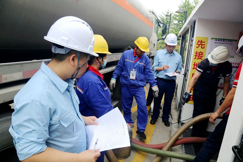 隨后,在接卸油現(xiàn)場,組織全體參訓(xùn)人員進行油罐車接卸油實操考試,由總經(jīng)理助理李新宇及行政有關(guān)部室人員組成的評委組進行現(xiàn)場考核、打分,從而通過實操演練達(dá)到“理論學(xué)習(xí)指導(dǎo)實踐、實踐鞏固理論學(xué)習(xí)”的效果。