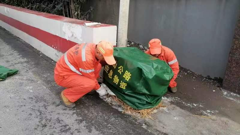 迅速出擊,合理處置。21日夜晚起,公司搶險人員化身風雪中的守護人,在重點路段、橋梁、高架、下穿等易結冰易路段鋪設草包、及時預撒融雪劑,進行各項預防工作。