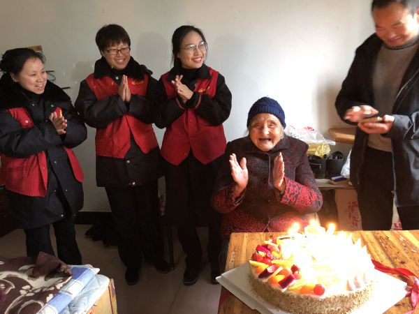 12月15日上午,公路開(kāi)發(fā)公司下屬浦陽(yáng)收費(fèi)站團(tuán)員青年來(lái)到結(jié)對(duì)敬老院為百歲老人慶祝生日,為她們帶去了蛋糕、水果以及生日的祝福。