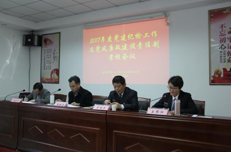 1月9日下午,集團黨委委員、紀委書記、工會主席郭維濤帶領檢查組對公交公司2017年度黨建紀檢工作及黨風廉政建設責任制落實情況進行檢查考核。公司全體班子成員、中層干部及黨員群眾代表參加考核會,會議由集團黨群工作部經理李迪鳴主持。