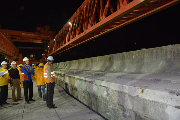 2014年10月13日23點40分,機場公路改建工程四標施工單位——中鐵二十四局集團有限公司正式開始對機場公路市心路互通段跨滬昆鐵路橋梁拆除II級封鎖施工,指揮部會同上海、杭州相關鐵路部門參加了此次拆除過程。在各有關單位的精心準備和計劃下,施工單位在100分鐘的鐵路封鎖時間內順利完成了各項預定目標,成功拆除了19#-20#跨左幅1塊邊板和1塊中板,為下一步拆除剩余跨鐵路橋梁板工作奠定基礎。